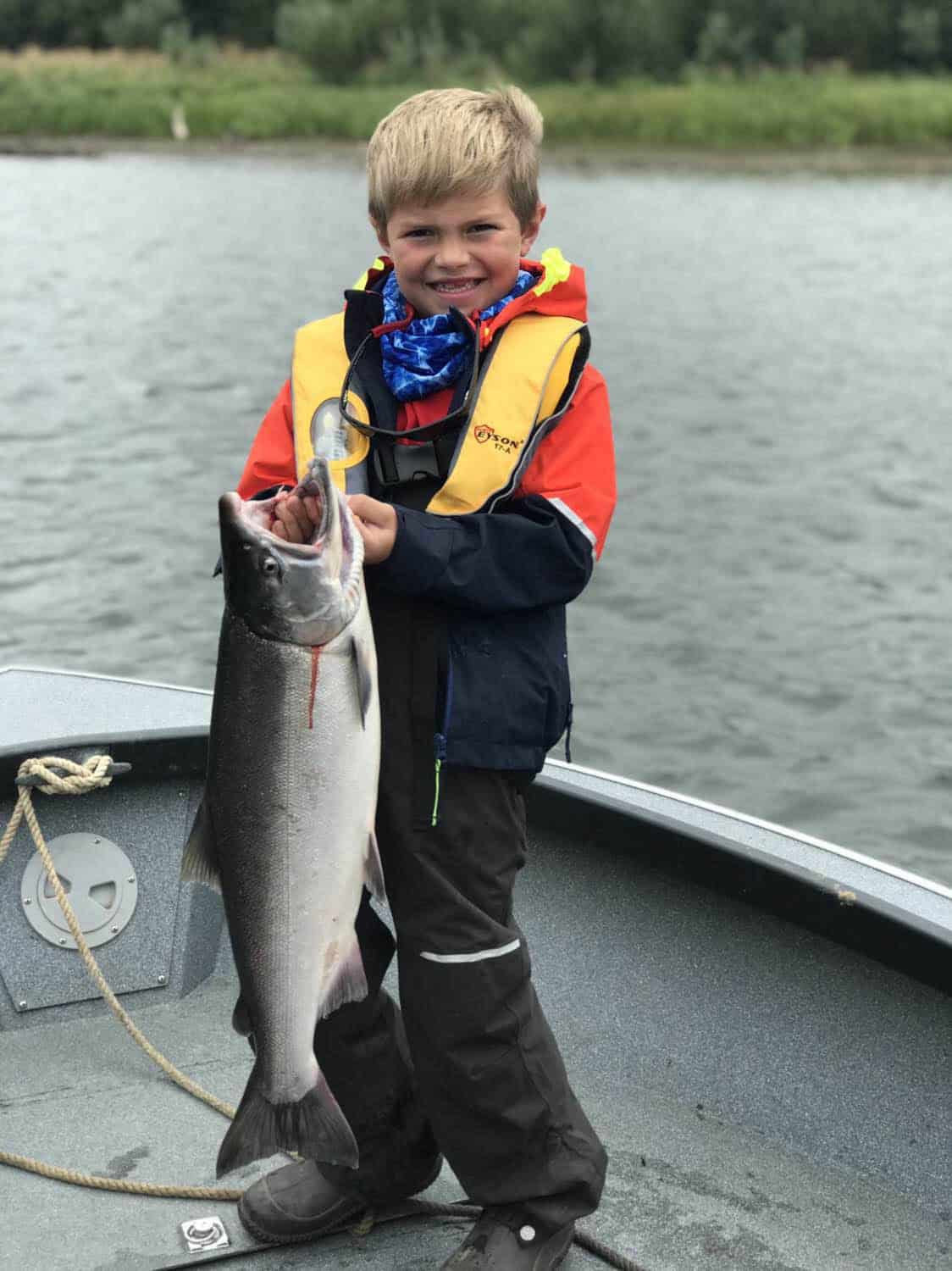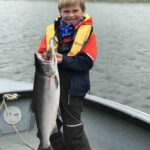 An enthusiastic angler, Trent’s been casting and reeling on his own since he was five. At home they fish speckled trout, flounder, red drum, and troll for bluefish and Spanish mackerel. Their family also targets panfish in the fall. Trent caught a huge variety of fish on his Alaska family vacation including coho, chum, king, rainbow, jack king, and pike. He handled spinning gear as proficiently as many of our senior guests. He practiced casting outside back home in preparation for this trip after working with PopPop. He even fished with a fly rod from the shores of the Nushagak after getting a fifteen minute lesson with guide Ted Gibson. It made the trip for PopPop, an experienced fly angler, to see his young grandson cast, hook, and land a silver on the fly.