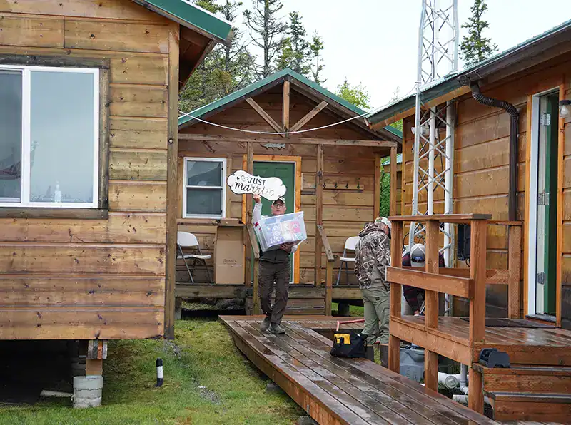 Jimi and Sarah arrived Monday. Several planes would bring the bride’s father, stepfather, sisters, brother, nieces, nephews and friends over the next day. Matt and Meli traveled all the way from Israel. Everyone had a great time fishing and experiencing remote Alaska while behind the scenes we were preparing for a wedding.