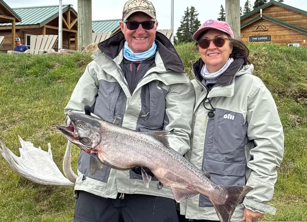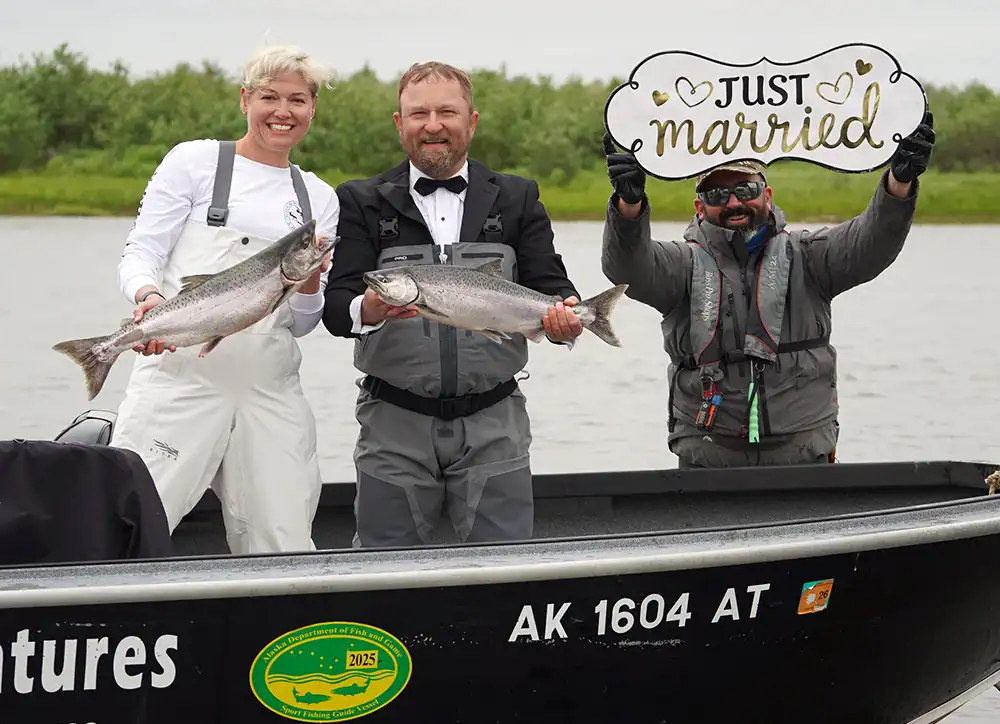 Our first guests of the season are here, and the kings are cooperating! Limits are already coming to the boats. This week also marks the kickoff of Jimi and Sarah’s destination wedding celebration. Their friends and family are filling the lodge with more guests arriving daily. Fishing is front and center until it’s time to say “I do.” Lodge owner Pete will officiate the ceremony—because who better to guide this union than the man behind The Nush?