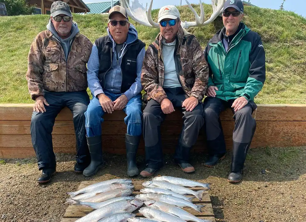 Each summer, we have the pleasure of welcoming a crew of four longtime friends—Russ, Jim, Reid, and Bill—who’ve made fishing at our lodge a cherished annual tradition. For nine straight seasons, they’ve returned to the Nushagak to fish, laugh, and celebrate the kind of camaraderie that the river delivers. And now with two more years already scheduled on the books, their annual trip streak is still going strong.