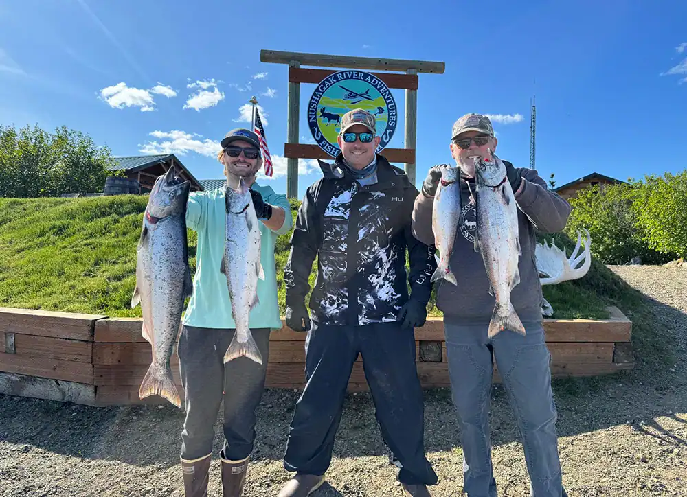 Meanwhile, two of our guests had a spectacular fly-out adventure today. Before arriving, they worked with Pete to build a well-rounded Alaska itinerary. In addition to their days at the lodge, they added a guided fly-out lake trip and a saltwater fishing day on the Kenai Peninsula. Between the Nush, the lakes, and the ocean, they’re headed home with full coolers and even fuller photo rolls.